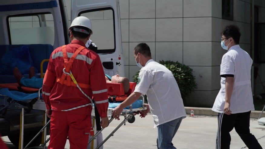 啟動儀式后,黃石市經(jīng)開投路面材料公司開展應(yīng)急演練活動演練以模擬有限空間作業(yè)環(huán)境下人員缺氧窒息暈倒為背景。事故發(fā)生后,安全保衛(wèi)組、事故救援組、醫(yī)療救護(hù)組、后勤保障組等各應(yīng)急小組迅速趕赴現(xiàn)場,采取有效措施進(jìn)行事故應(yīng)急救援。演練全程用時(shí)僅15分鐘,演練過程緊張有序,程序規(guī)范、場景真實(shí)、反應(yīng)快速、效果良好。應(yīng)急演練活動進(jìn)一步提升了建工集團(tuán)安全員處置突發(fā)事件的水平和應(yīng)急處置能力,為完善突發(fā)事件應(yīng)急預(yù)案提供了寶貴的實(shí)踐經(jīng)驗(yàn)。